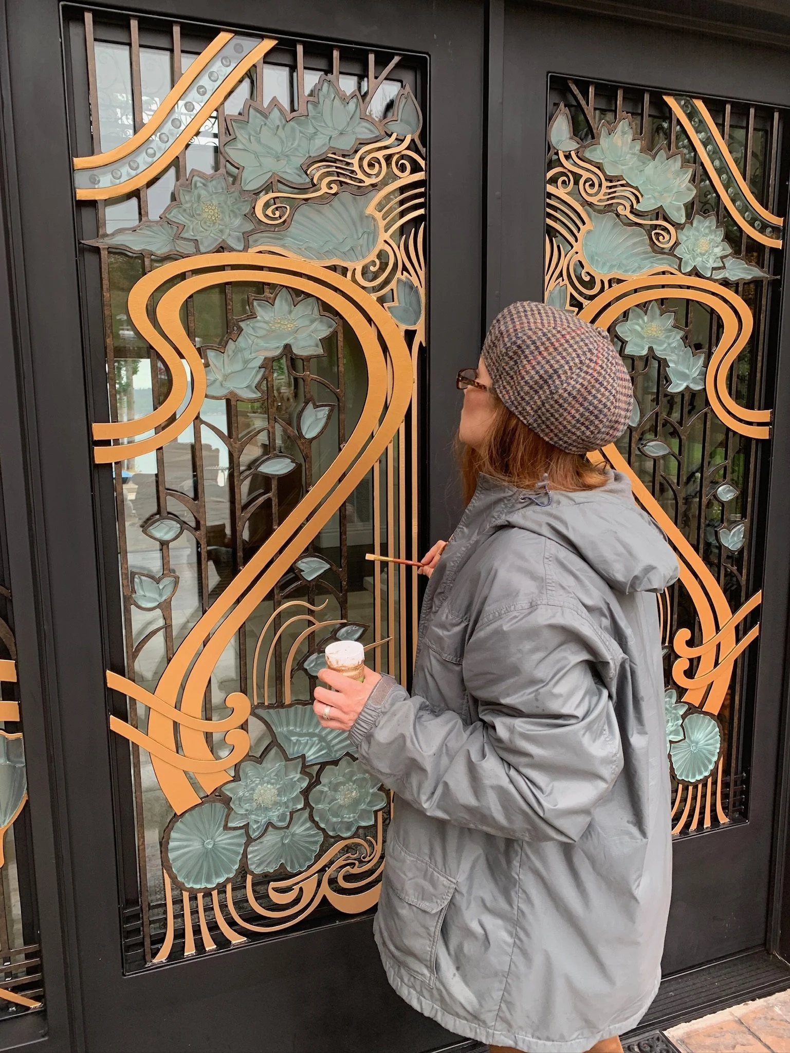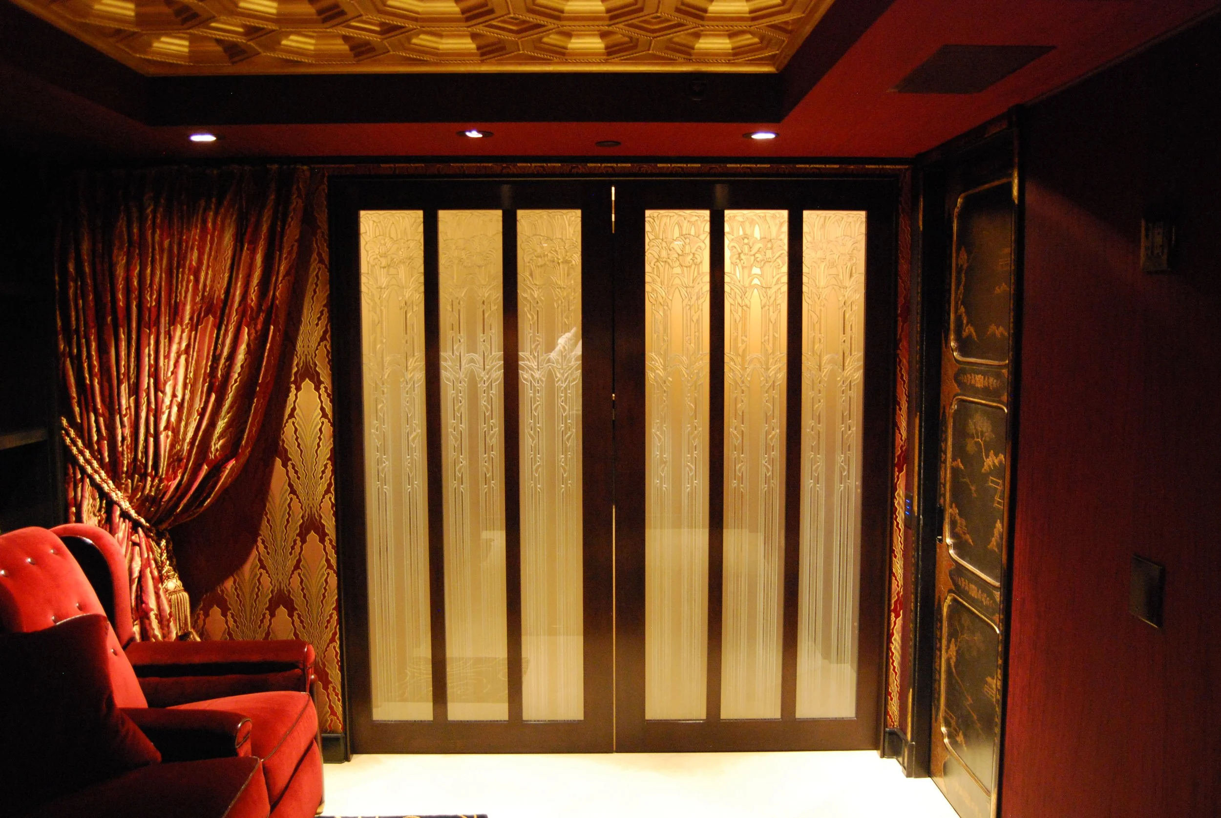 Close-up of Lalique-inspired Iris Door Panels, Carved Glass