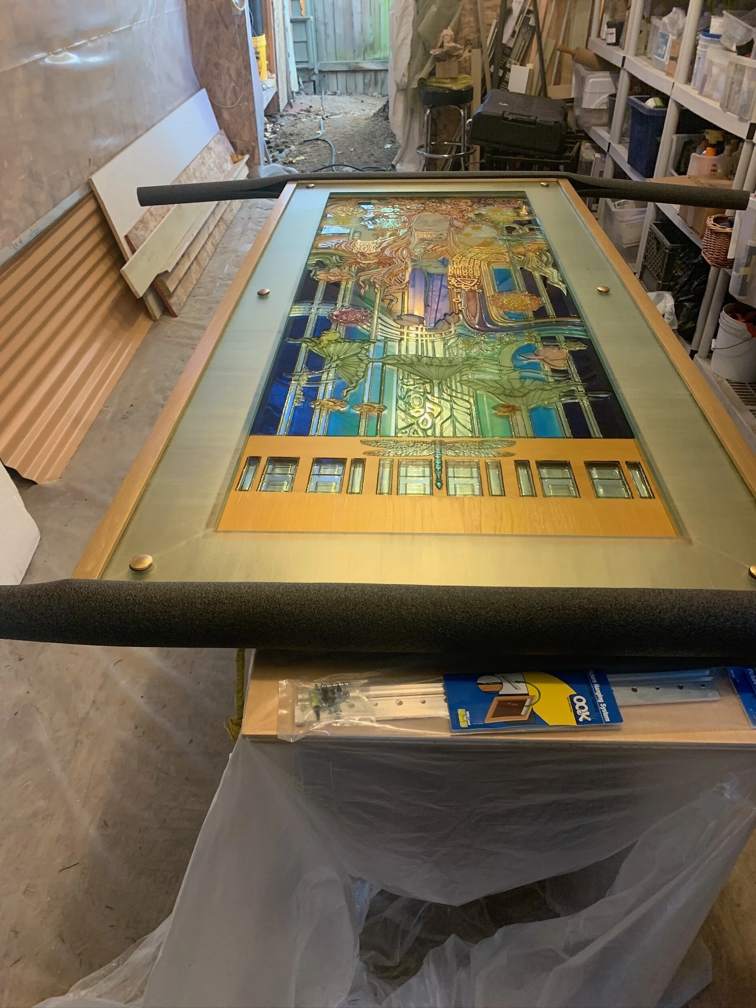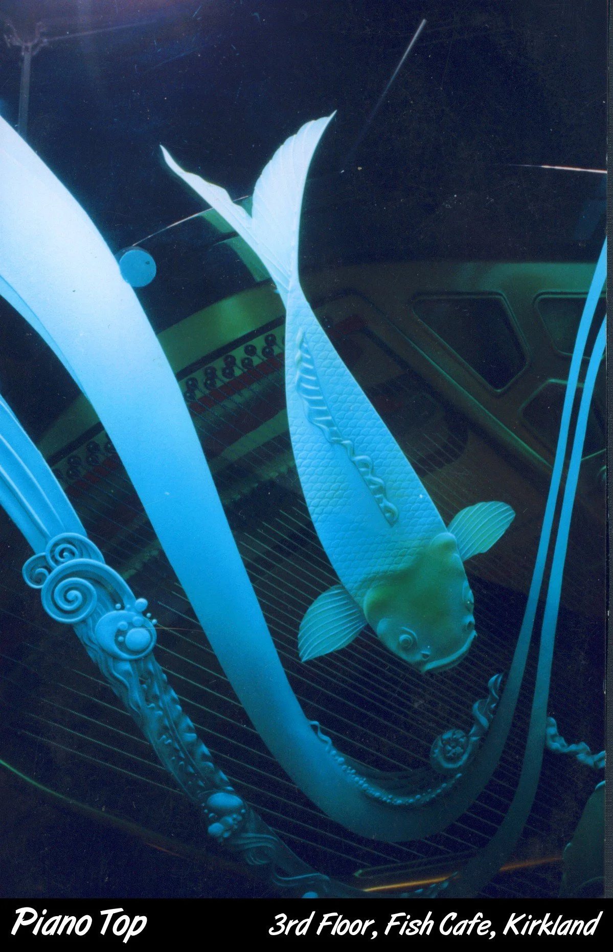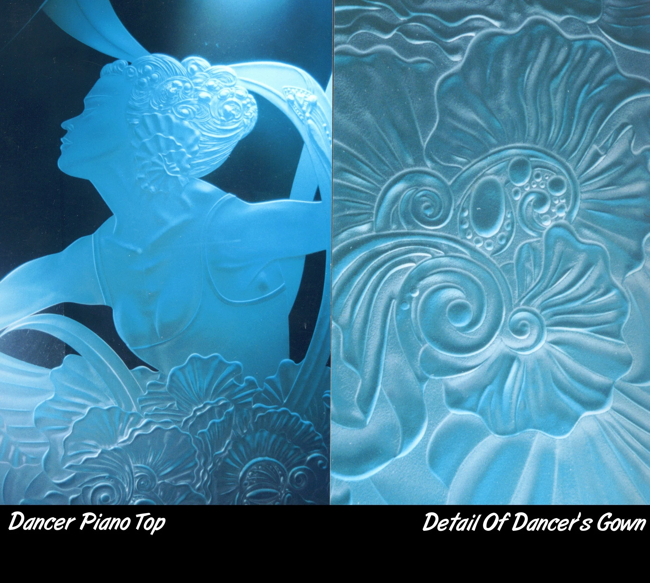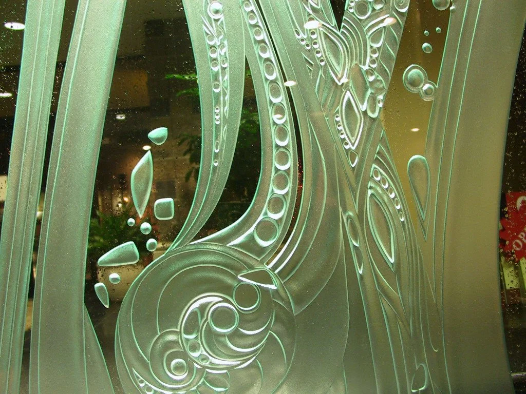 Close-up of Carved Glass Piano Top for 3rd floor Fish Cafe - Seattle, WA