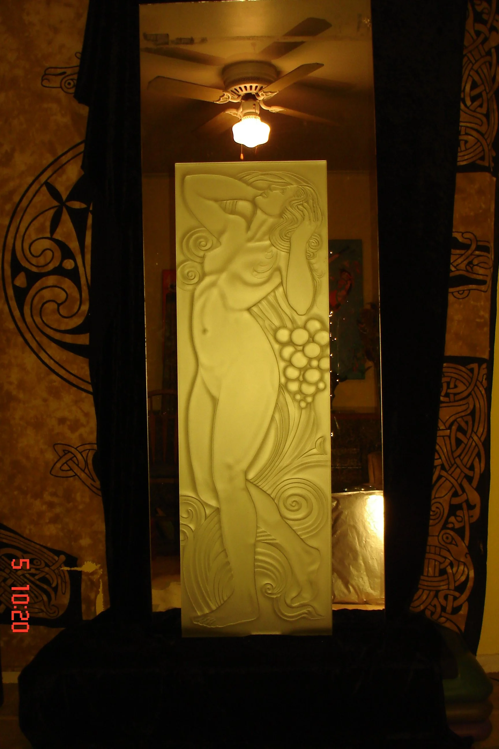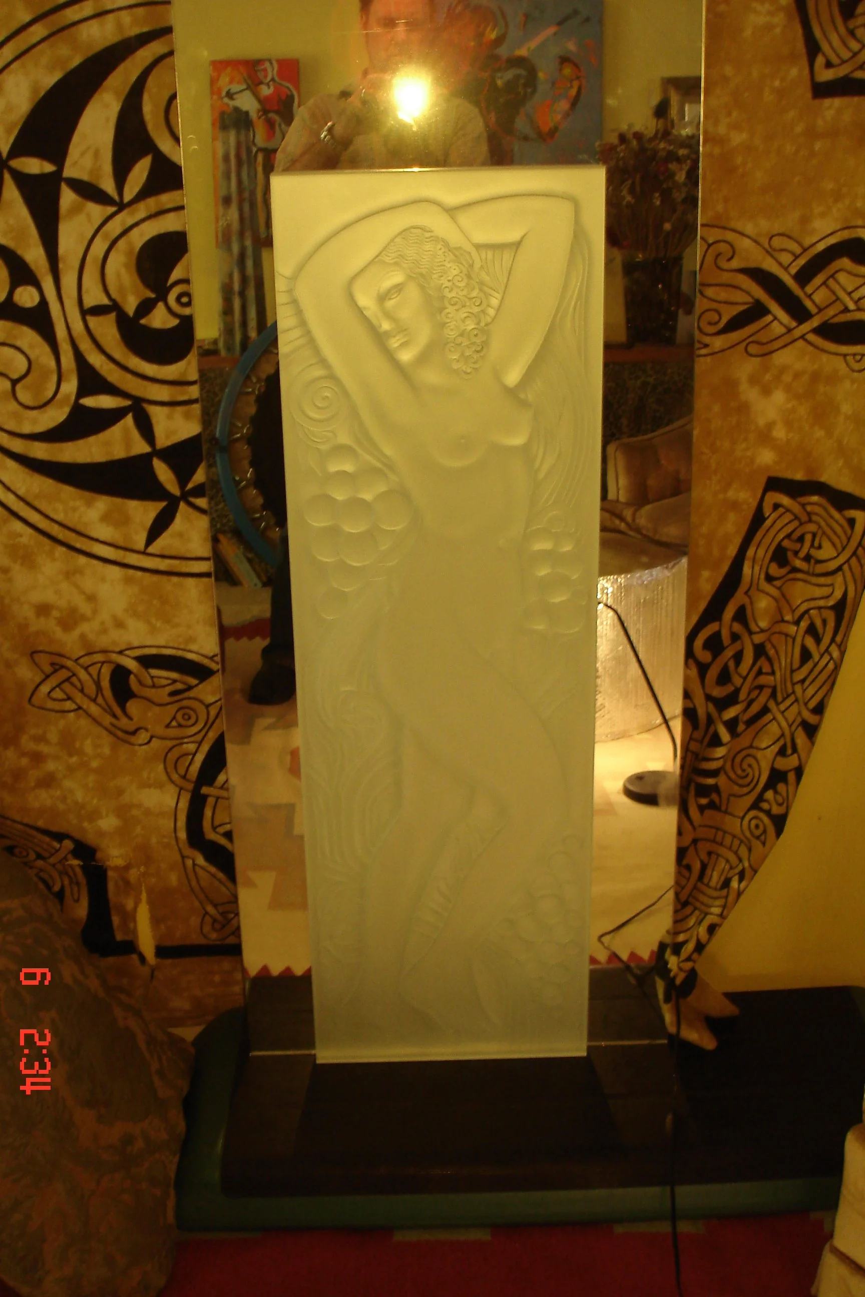 Carved Glass Lalique-inspired Etruscan Door Panel